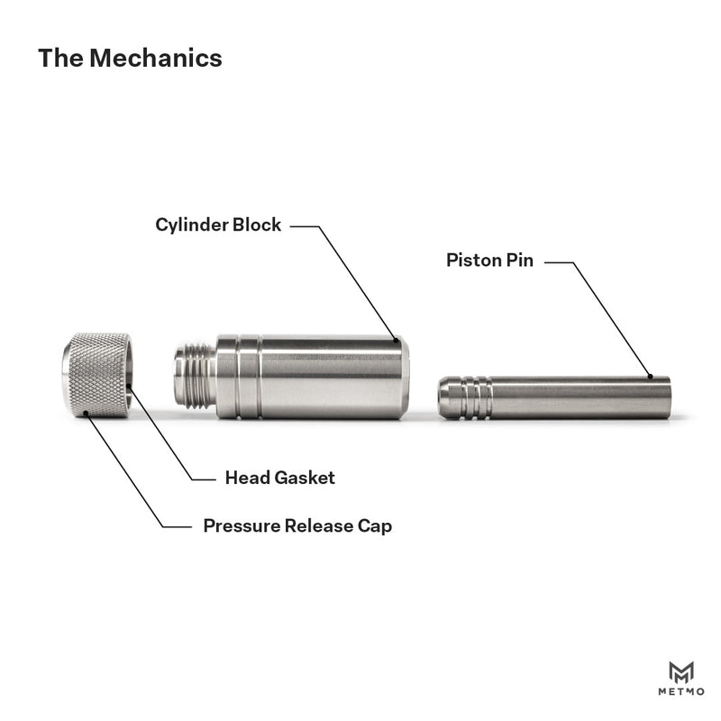 Piston can be fully disassembled. With simple mechanical parts, the Piston is designed to be fully stripped down for easy maintenance so it can be kept in top condition and last a lifetime. Like a well aged and cared for vintage car, minus the leaded fuel.